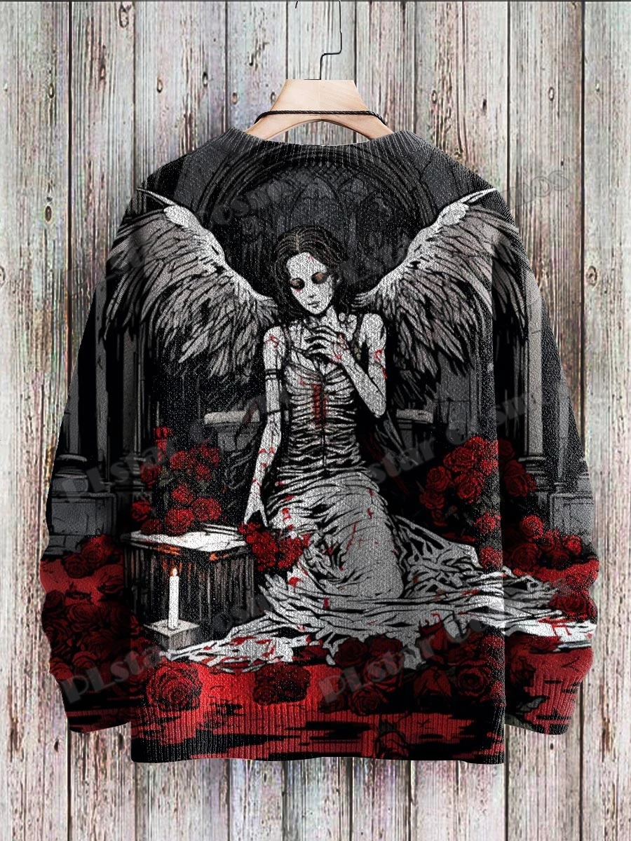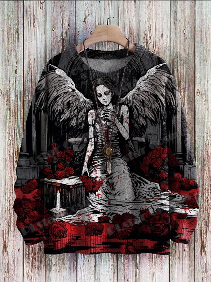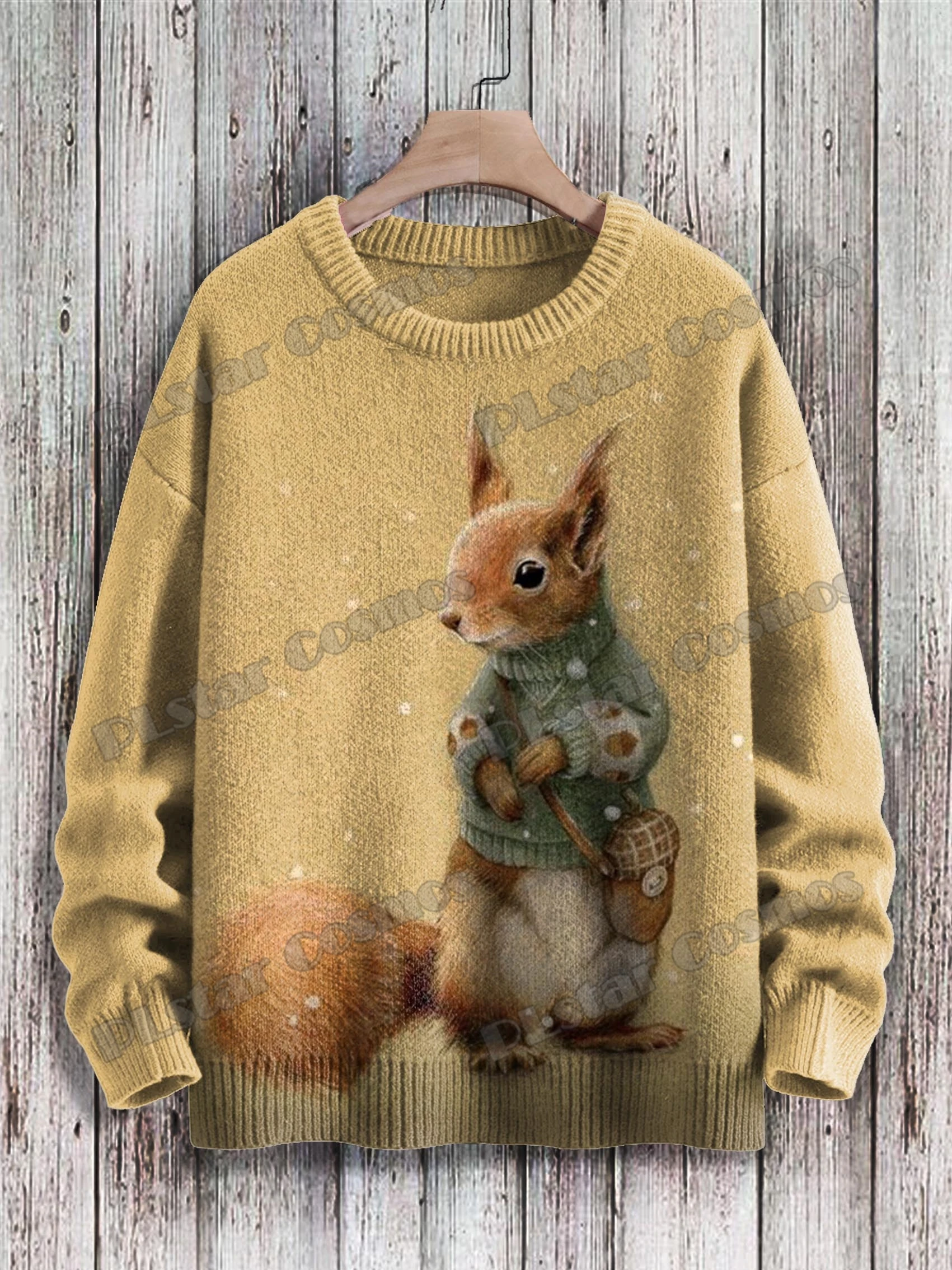 Cute Winter Squirrel & Halloween Ghost Art 3D Printed Men's Knitted Pullover Winter Unisex Casual Knit Pullover Sweater ZZM87