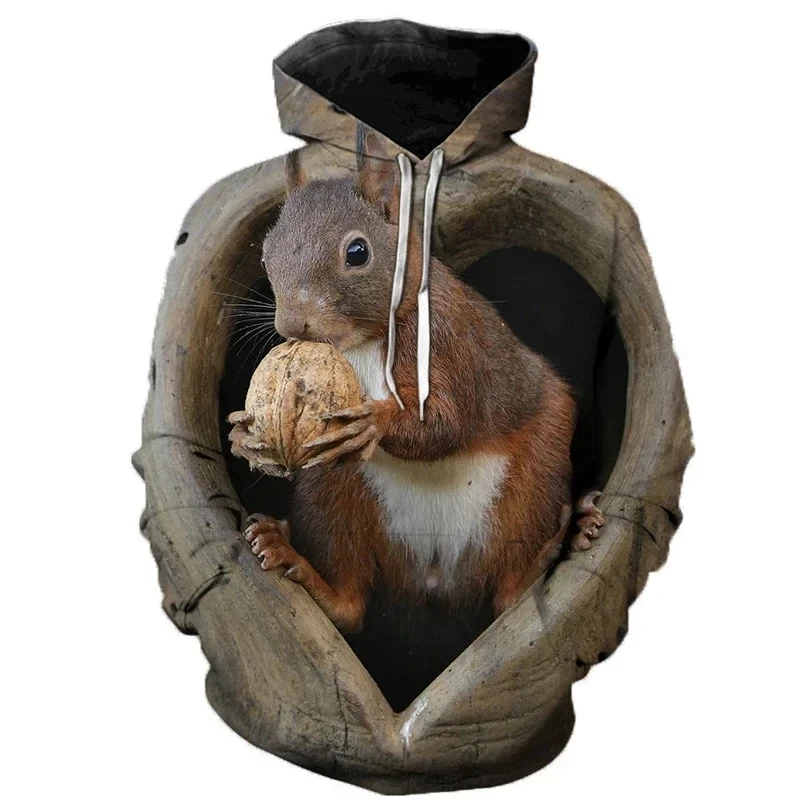 Funny Squirrel Hoodies Animal 3D Print Women Men Streetwear Oversized Pullovers Hoodie Hooded Sweatshirts Woman Tops Clothing