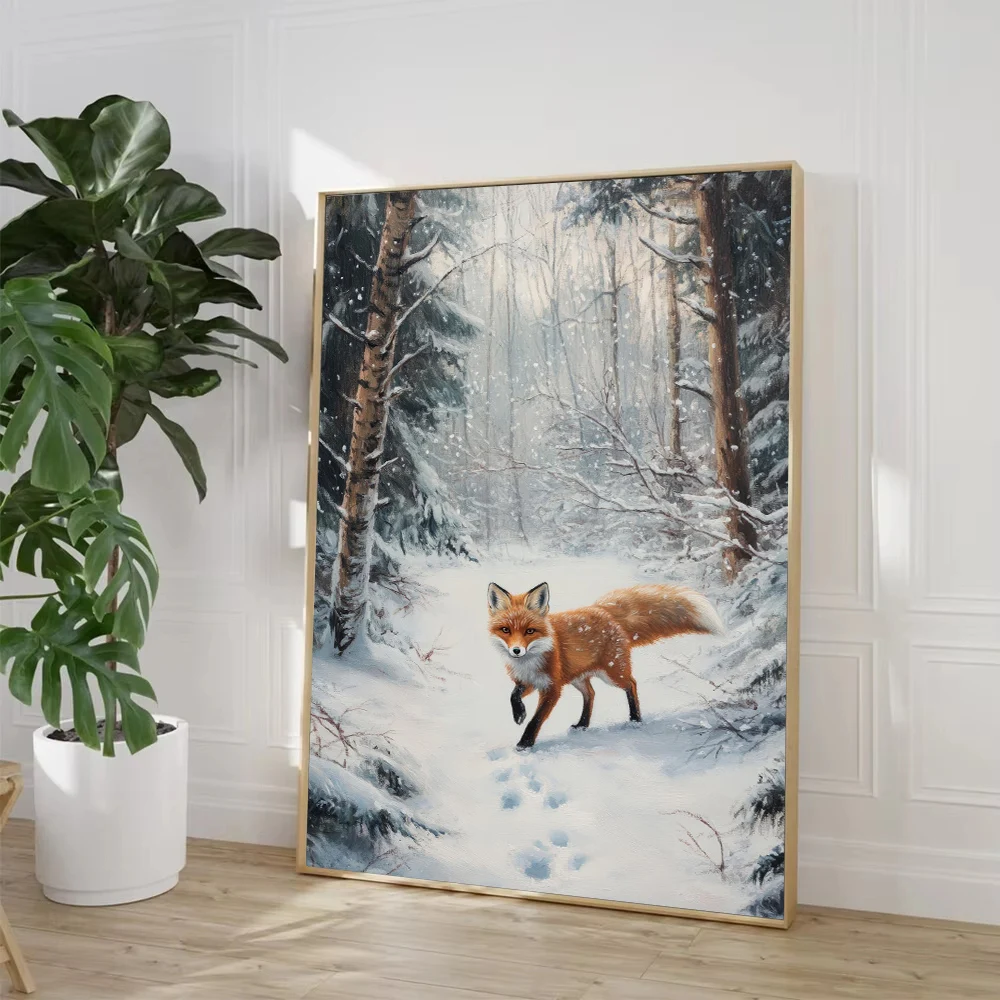 Rabbit Squirrel Mouse Wolf Swan Fox Deer in Woods Poster Dark Academia Art Canvas Painting Print for Living Room Home Decor
